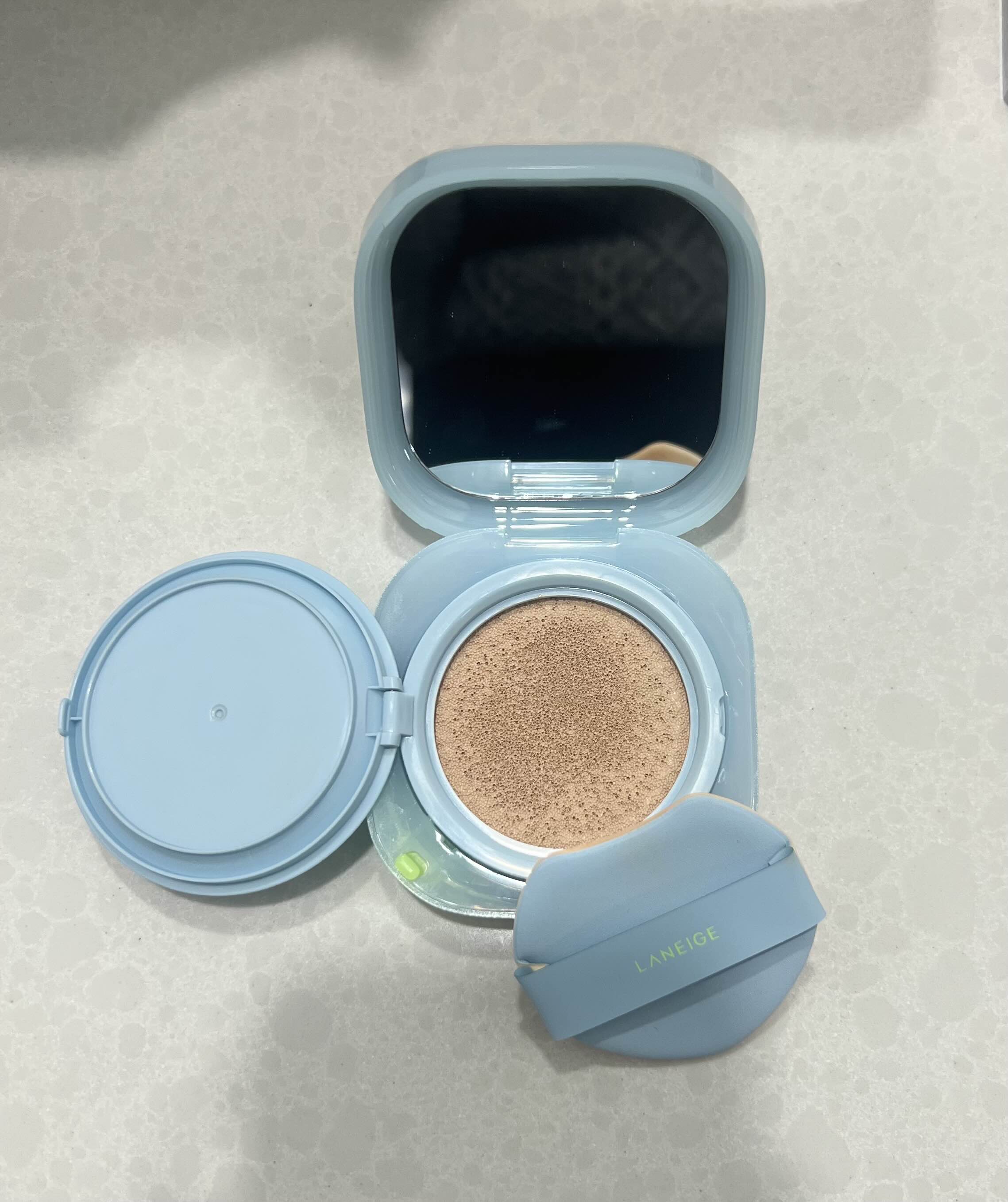 라네즈 네오 쿠션 뮤이 케이스에는 외장 내장 거울이 포함되어 있어 좋았어요 왜냐하면 야외/외출 시 즉각적인 수정 메이크업이 가능하기 때문이예요